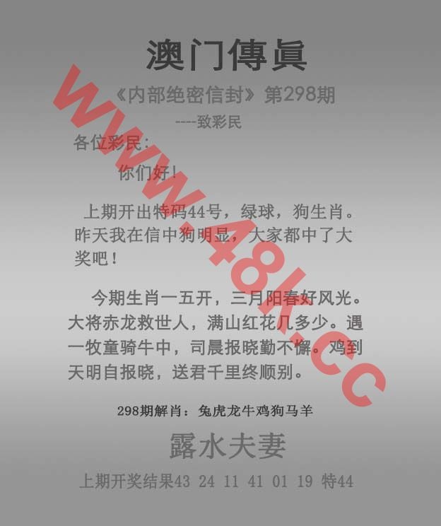 | 297期四肖 | 蛇 鸡 猴 兔 | 开:狗 44 |